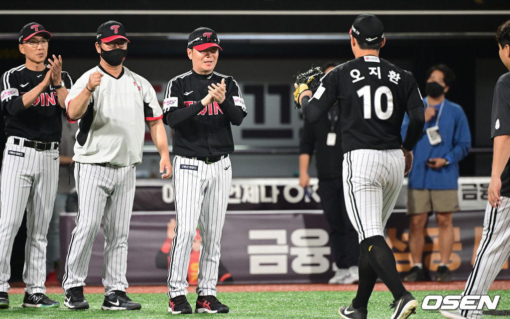 선취포에 사령탑은 애정을 아낌없이 표현했다. 류지현 감독은 양손으로 미니하트를 그리며 더그아웃으로 들어오는 오지환을 반겼다.