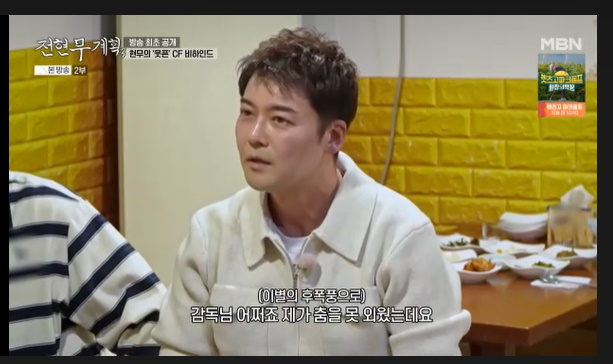 이 비화에 대해 전현무는 "광고찍기로 한 전날 여자친구랑 헤어졌다"며 깜짝 고백, 뜻밖의 전개에 숙연해졌다. 눈물흘리는 어릿광대 혼신의 연기의 비결이었던 것. 눈물을 머금은 연기였다.