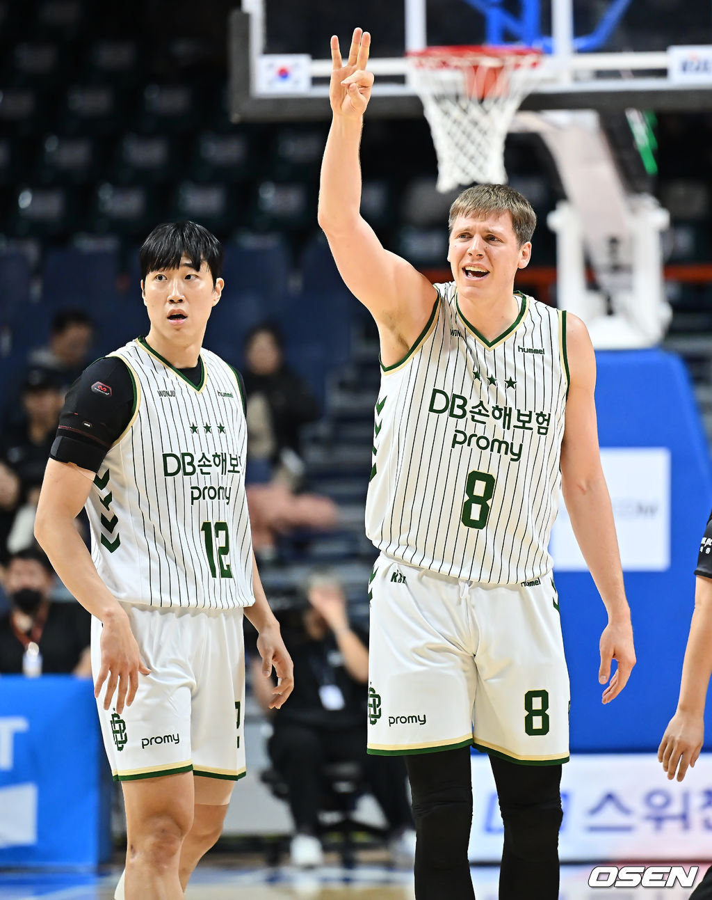 원주 DB 헨리 엘런슨이 자신의 골이 3점이라며 어필하고 있다. 2025.12.06 / foto0307@osen.co.kr