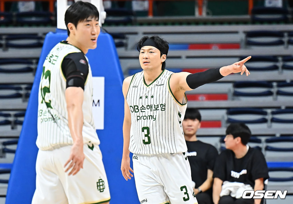 원주 DB 이정현이 속공 패스로 원주 DB 이용우의 득점 성공에 기뻐하고 있다. 2025.12.06 / foto0307@osen.co.kr