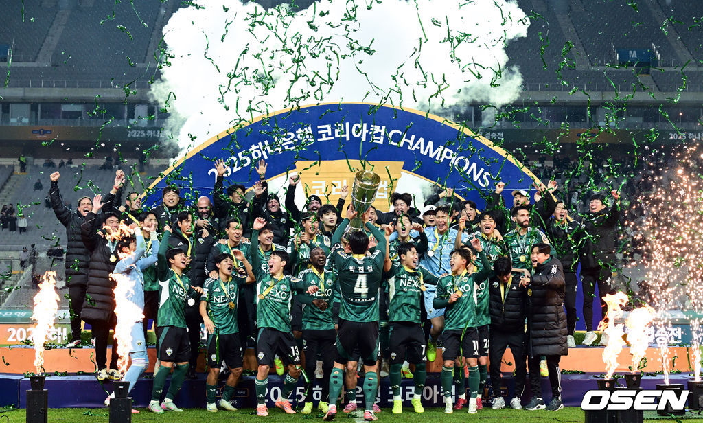 전북현대는 6일 오후 1시 30분 서울월드컵경기장에서 열린 2025 하나은행 코리아컵 결승전에서 광주FC와 맞붙어 2-1로 승리했다.