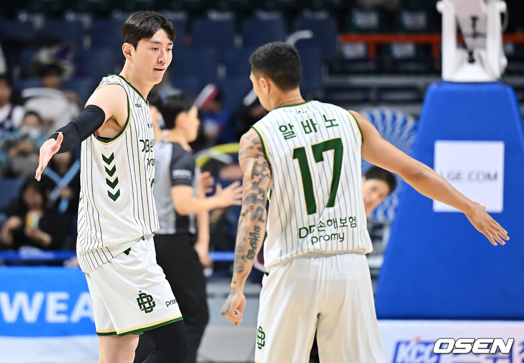 원주 DB 강상재가 알바노와 하이파이브를 하고 있다. 2025.12.06 / foto0307@osen.co.kr