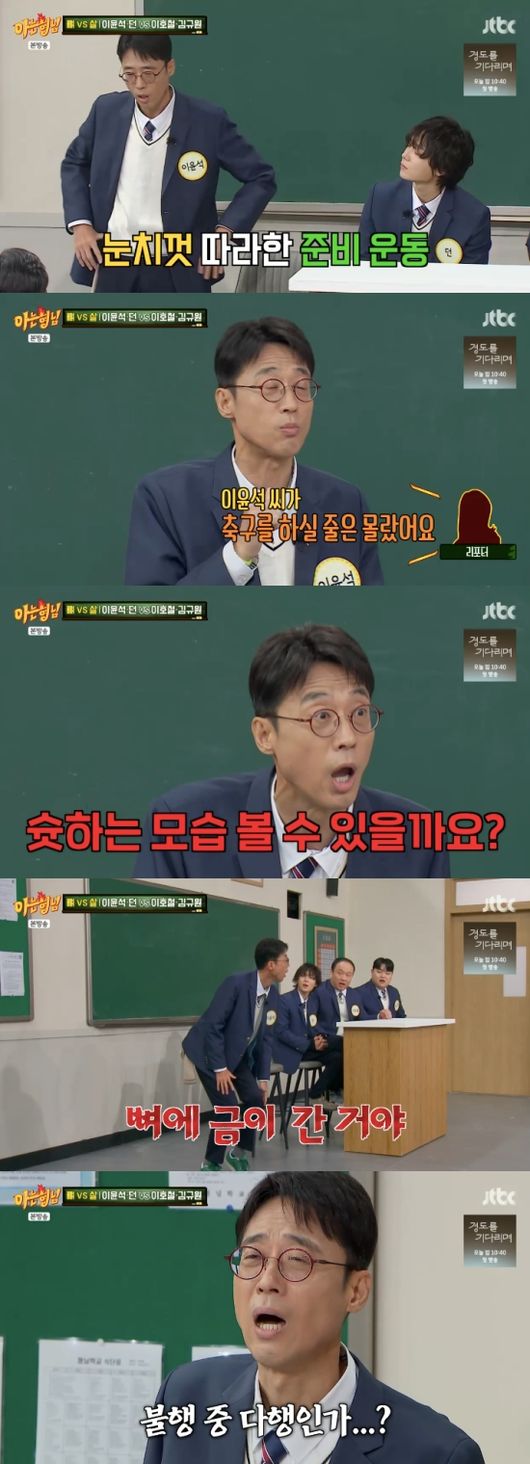 이윤석은 과거 축구를 하던 때를 떠올렸다. 이윤석은 “준비 운동을 하고 들어가야 하지 않냐. 리포터분이 오더니 내가 축구할 줄은 몰랐다고 하더라"라고 설명했다.