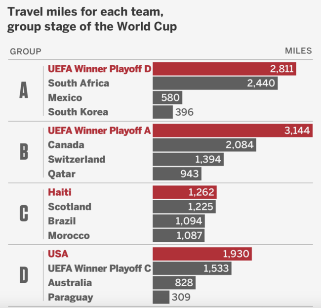 또 다른 이점이 있다. 한국이 개최국 멕시코와 한 조가 되면서 이동거리 또한 획기적으로 줄었다. ESPN에 따르면 한국의 조별리그 이동거리는 637km로 48개국 중 7번째로 짧다. 933km를 이동하는 개최국 멕시코보다도 짧은 최상의 동선이다.
