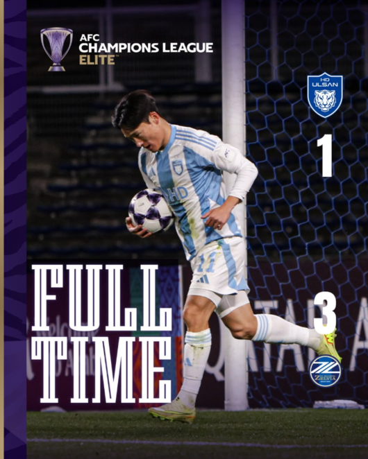울산은 9일(한국시간) 일본 마치다 기온 스타디움에서 열린 2025-2026 아시아축구연맹(AFC) 챔피언스리그 엘리트(ACLE) 리그 페이즈 6차전에서 마치다 젤비아에 1-3으로 패했다.