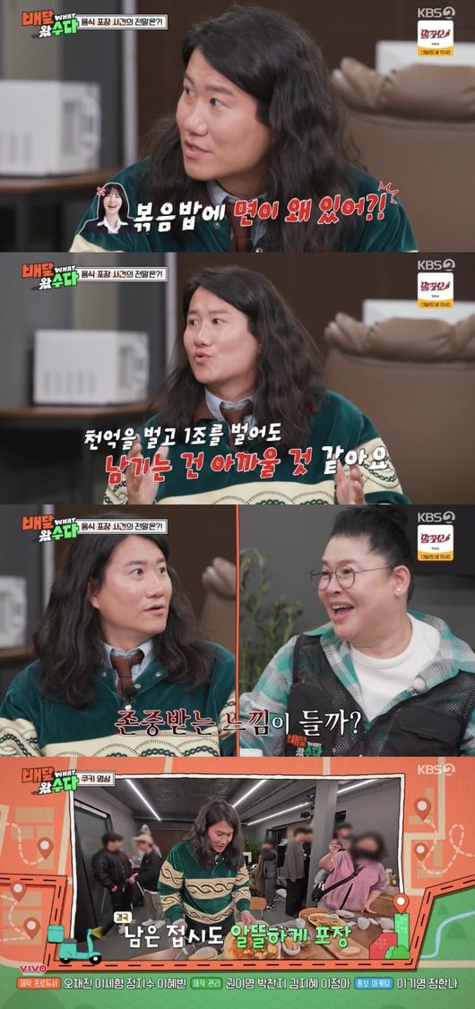 10일 방송된 KBS 2TV 예능 ‘배달왔수다’에서는 임우일, 김원훈, 엄지윤이 배달 손님으로 등장한 가운데 임우일이 남다른 짠내력을 드러냈다.