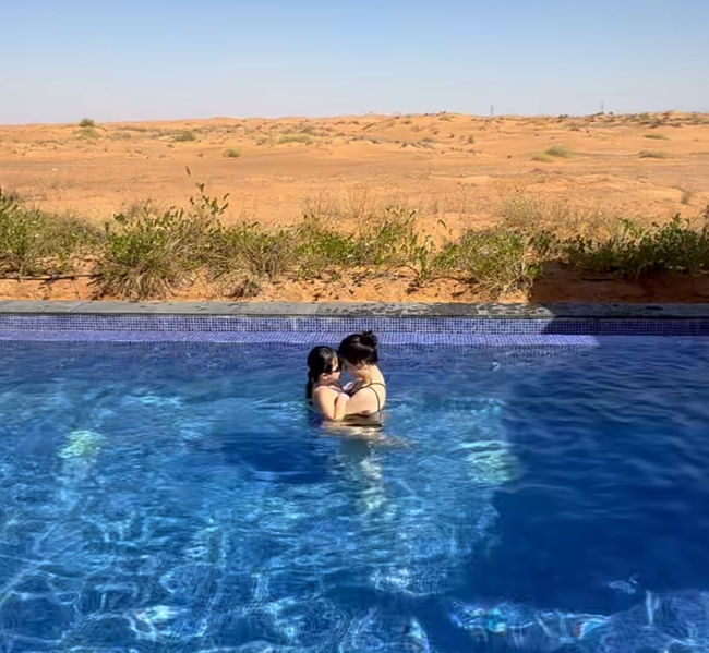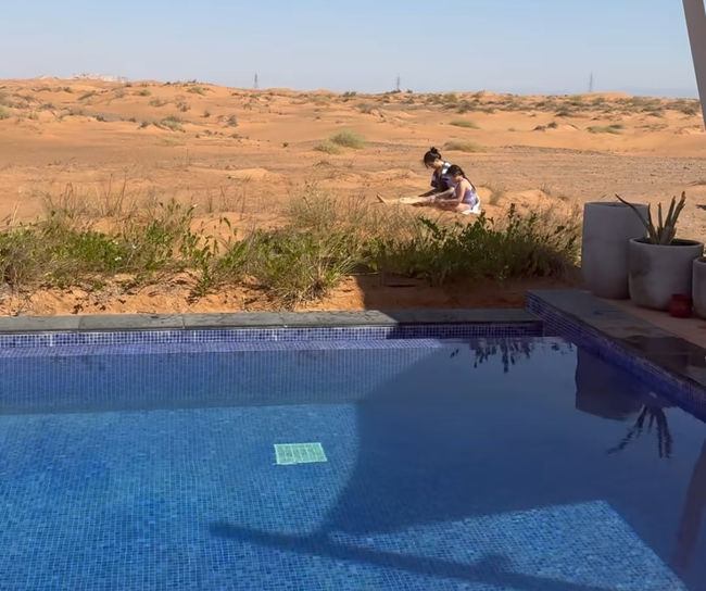 13일 박하선은 자신의 소셜 계정에 여러 장의 사진을 공개했다. 박하선은 "매일 아침 모래놀이 초극성수기+미친 물가에도 사막의 호텔 가격은 합리적(30선, 두바이 사막 호텔 리스트 다 뒤짐) 게다가 메인 풀만 보고 갔는데 공사 중이라 풀빌라 업그레이드 해줌 럭키비키 만수르 간식까지 먹으니 여기가 천국이네 그려"라며 한껏 즐기고 있는 자신을 표현했다.