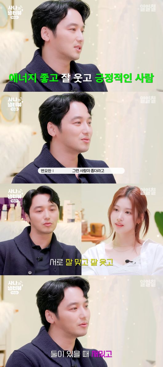 또한 변요한은 지난해 유튜브 콘텐츠 ‘냉터뷰’에서도 “에너지 좋고 잘 웃고 긍정적인 사람 그런 사람이 좋더라”고 밝히며, “살아가면서 만남을 가졌던 사람들이 굉장히 많은데 그냥 가장 좋은 건 편안함인데 그건 좋은 에너지가 밑바탕에 깔려 있어야 되는 것 같다. 서로 잘 맞고 잘 웃고. 둘이 있을 때 재미있고”라고 설명했다.