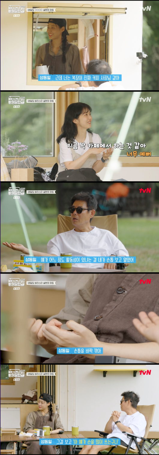 이어 성동일은 설현을 향해 남다른 칭찬을 건넸다. 성동일은 "얘가 어느 정도 활동성이 있냐는 걸 내가 손톱 보고 알았어"라고 말해 모두의 이목을 집중시켰다.