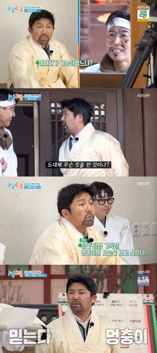 양반 조세호와 머슴 김종민은 티격태격하면서도 유쾌한 케미를 자랑했다. 쉬는 시간을 맞아 조세호는 김종민에게 시중 차림표를 가리키며 안마를 요구하는가 하면, 식혜에 소금을 탄 김종민을 나무라기도 했다.