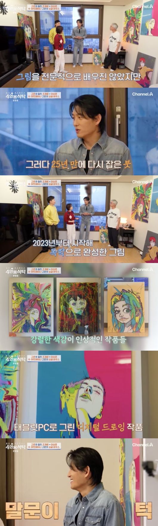 고준은 집 소개를 했고 거실 한 쪽에 고준이 직접 그린 그림이 걸려 있었다. 이에 고준은 “그림을 배운 적이 없다. 어렸을 때 만화를 따라 그리다가 25년 만에 다시 붓을 잡아서 그림을 그렸다. 그걸 유니크하게 봐주시더라”라고 말했다.