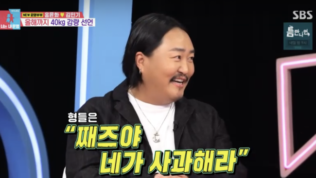 그는 아내에 대해 “가장 나이가 어려도 카리스마가 있다”며 '오빠들을 휘어잡는 테토녀 스타일'이라고 소개했다. 이어 “형들이 ‘너랑 살아주는 것만으로도 고마운 줄 알아라. 잘못 없어도 먼저 미안하다고 해라’고 말한다”고 전해 또 한 번 웃음을 안겼다.