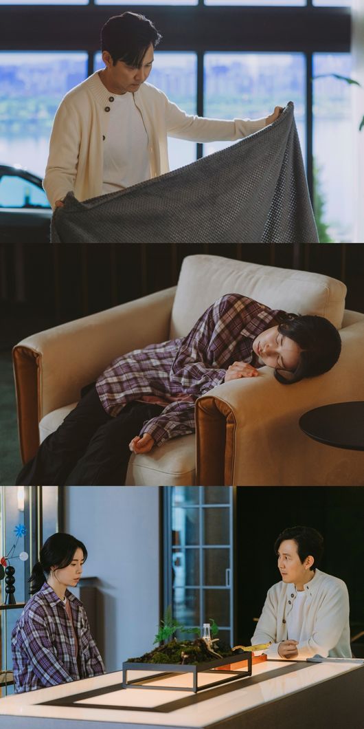 그런 가운데 공개된 사진은 임현준의 충격 고백, 그 후 이야기를 더욱 궁금케 한다. 어쩐 일인지 임현준의 집으로 찾아온 위정신은 소파 위에서 불편한 자세로 곤히 잠들어 있는 모습이다. 이불 하나 제대로 덮지 못한 위정신이 걱정되는 듯 담요를 들고 서성이는 임현준의 행동에서 그를 걱정하는 마음이 고스란히 전해진다.
