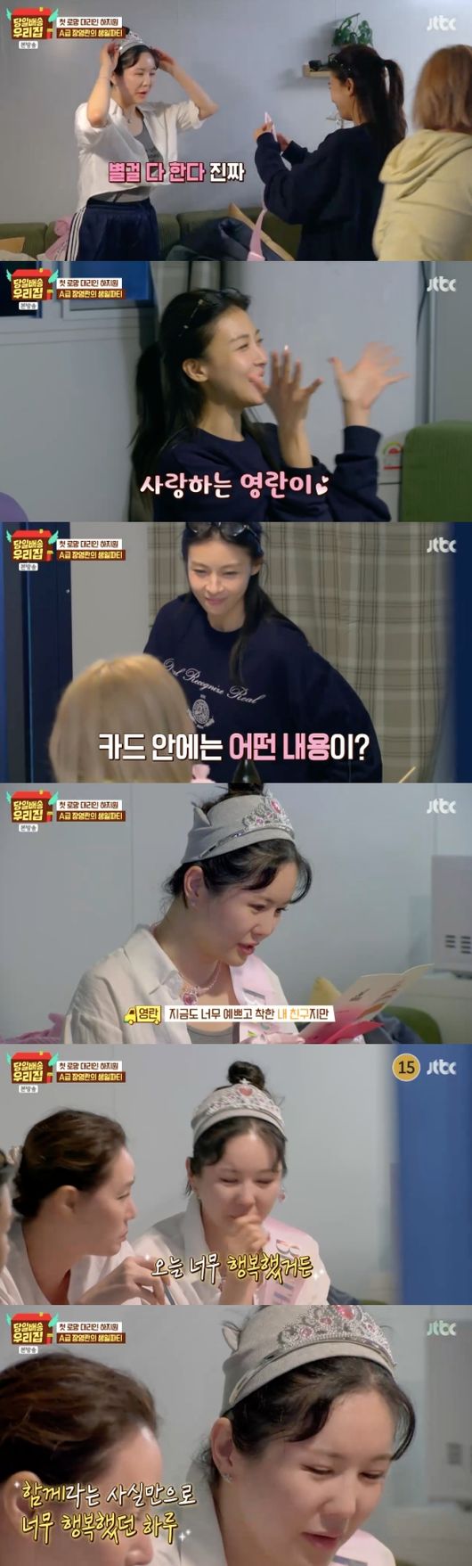 하지원은 카드도 내밀었고 장영란은 하지원의 진심이 담긴 편지를 읽으며 눈물을 글썽였다. 장영란은 “슬픈 내용은 아니다. ‘앞으로 좋은 일, 행복한 일만 가득하길 응원할게’(라고 쓰여 있다)”라며 22년 우정에 감동을 내비쳤다.