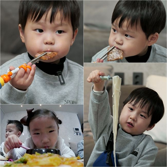 그런가 하면, 은우와 지우는 용호상박 면치기 스킬을 뽐낸다. 은우는 젓가락으로 자신의 키만큼 면을 들어올려 폭풍 면치기를 선보인다. 이에 질 수 없다는 듯 지우는 코가 그릇에 닿을 듯 면을 흡입해 웃음을 자아낸다. 이에 정우는 “형아 누나! 그릇에 얼굴 빠지겠어”라며 걱정 어린 한마디를 날려 폭소를 유발했다는 후문.