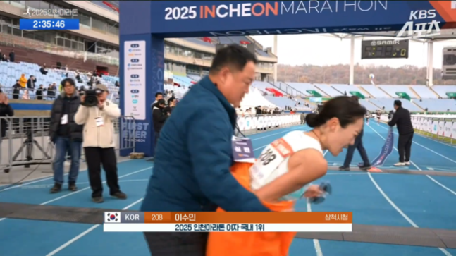 김 감독이 논란의 중심에 선 발단은 지난달 23일 인천 송도에서 열린 2025 인천국제마라톤 결승선 장면 때문이다.