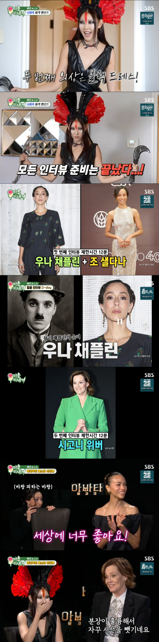 특히 할리우드의 전설 시고니 위버는 한혜진을 보자마자 “분장이 너무 훌륭해서 자꾸 시선을 뺏긴다”며 극찬을 아끼지 않았다. 긴장감에 우황청심환까지 준비하며 인터뷰에 나섰던 한혜진은 배우들의 뜨거운 리액션에 환한 미소로 화답하며 성공적으로 인터뷰를 마쳤다.