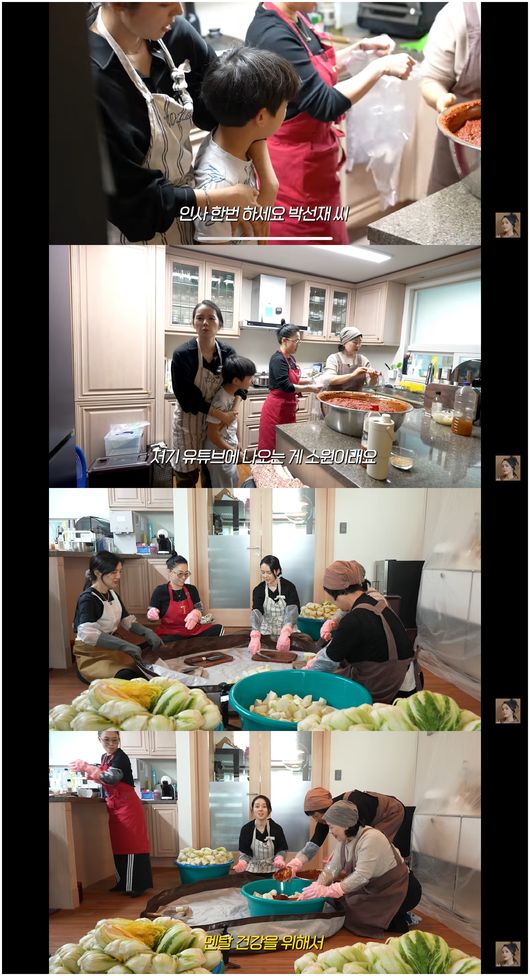 25일 한가인의 유튜브 채널 ‘인생 첫 김장으로 120포기 담그는 큰손 한가인(경상도 1등 김치 레시피)’이라는 영상이 공개됐다. 이날 한가인은 자신의 김장 선생님으로 두 사람을 소개했다. 한가인은 “선생님과 선생님의 선생님인 어머니시다. 김장을 배워보고자 왔다”라며 학부모 모임에서 만난 친구인 탁여진 씨의 어머니 송정숙 씨를 소개했다. 또한 함께 김장을 담글 인력으로 학부모 모임 친구 김정선 씨, 송정숙 씨의 친구가 등장했다.