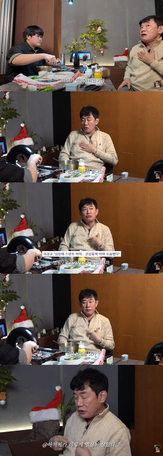 개그맨 이경규가 방송 녹화를 끝낸 직후 심장 스텐트 시술을 받은 경험을 고백했다.