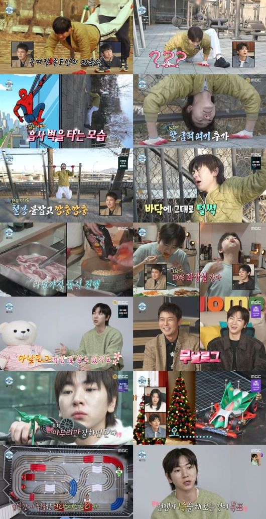 이주승은 지난 ‘순진무구 운동회’에서 체력 부족을 느꼈다며 ‘주도인(주승+무도인)’의 자존심과 명예를 회복하기 위해 추운 겨울 아침에도 운동에 집중했다. 그는 스파이더맨을 연상케 하는 땅 타기(?) 푸시업과 물구나무 푸시업 등 고난도의 체력 훈련에 도전했지만, 금세 지쳐 철봉에 매달린 채 깡총깡총 뛰며 턱걸이를 하는 모습으로 웃음을 안겼다.