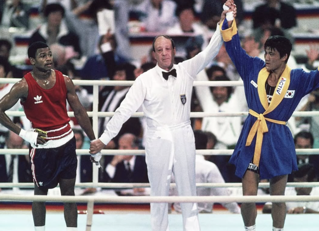 1988년 10월 2일 잠실학생체육관에서 개최된 서울올림픽 남자복싱 라이트미들급 결승전에서 한국의 박시헌(60)과 미국의 로이 존스 주니어(56)가 맞붙었다. 유효타에서 86-32로 존스가 일방적으로 밀어붙인 경기였다.