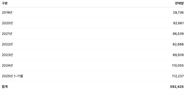 ♦팰리세이드 2025년 1~11월 트림별 판매(단위: 대)