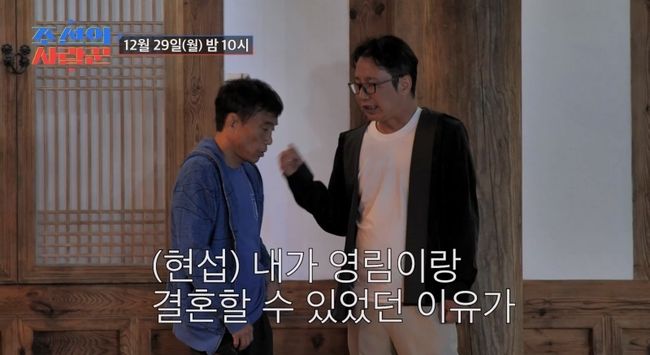 29일(월) 방송될 '조선의 사랑꾼'의 선공개 영상에서는 노총각 탈출에 성공한 '유부남 선배' 심현섭이 청송 심씨 문중 '제2의 심현섭'으로 불리는 심권호와 함께 진솔한 대화를 나눈다. 과거 '소개팅 백번 한 남자(소백남)'였던 심현섭은 칠전팔기의 끈기로 아내와 영화 같은 연애에 돌입했고, 결혼에 골인한 바 있다. 심현섭은 "내가 ♥영림이랑 결혼할 수 있었던 이유가 '아 그렇구나~'다"라며 "여자가 무슨 말을 하면 '아 그렇구나~'하고 긍정적으로 표현만 해주면 된다"라고 다양한 예시와 함께 세심한 코치에 들어갔다.