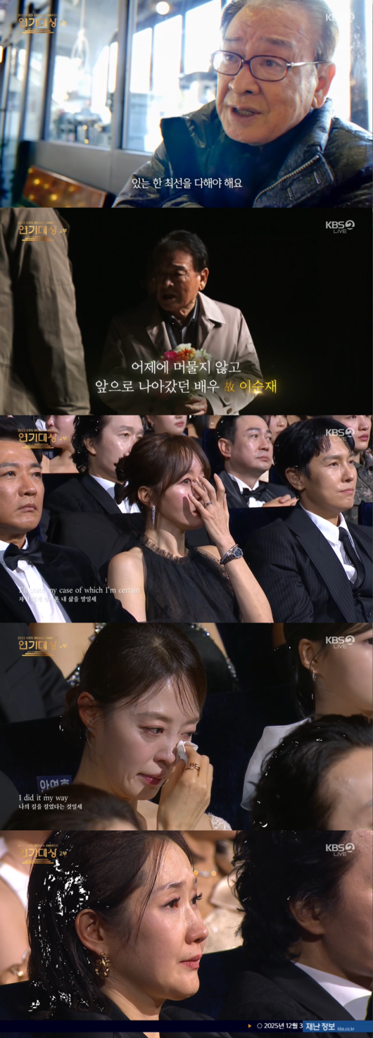 '2025 KBS 연기대상’ 한국 연기계의 거목, 故 이순재를 기리는 특별한 추모의 시간이 마련되어 모두의 가슴을 먹먹하게 했다.