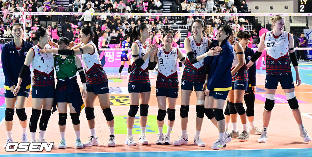 경기종료 후 현대건설 선수들이 승리의 기쁨을 나누고 있다. 2025.12.31 / soul1014@osen.co.kr