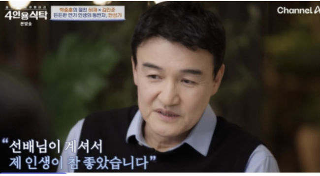 박중훈의 고백은 앞서 방송된 채널A*절친 토큐멘터리–4인용 식탁에서도 이어졌다. 그는 절친 허재, 김민준과의 자리에서 안성기에 대해 “동반자이자 아버지 같은 존재”라고 표현했다.“내가 풍선이라면, 안성기 선배님은 그 풍선에 돌을 매달아주신 분이다. 그 돌이 없었으면 날아가다 터졌을 것이다.”라고 말할 정도.  이어 그는 “얼마 전 ‘선배님이 계셔서 제 인생이 참 좋았습니다’라고 말씀드렸는데, 힘이 없으셔서 가녀리게 웃으시더라. 눈물이 터질 것 같았지만 꾹 참았다”고 말하며 울컥했다.