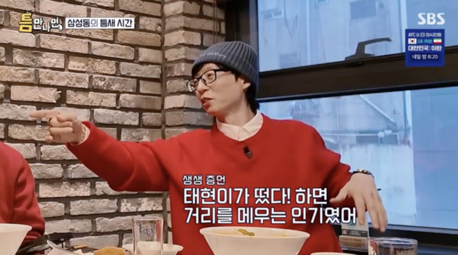 이에 유재석 역시 "차태현이 떴다 하면 거리를 메웠다. 국민 첫사랑이었다"라며 "매니저도 그 당시. 최고 비싼 스포츠카를 끌고 다닐 정도"라고 말해 눈길을 끌었다. 그러자 차태현은 머쓱한듯 "다들 정신 나갔을 때"라고 화답했다.