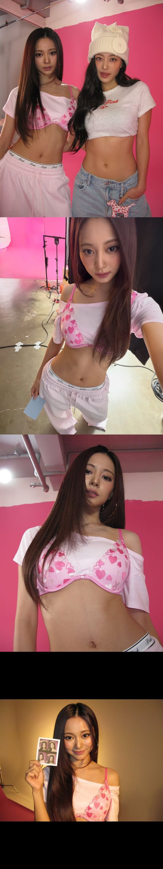 공개된 사진 속 쯔위는 기존의 청순한 이미지에서 완전히 벗어나, 옷 위에 브래지어를 레이어드한 독특하고 대담한 스타일링을 선보여 눈길을 끌었다. 특히 멤버 지효와 함께한 투샷은 그야말로 역대급이었다.