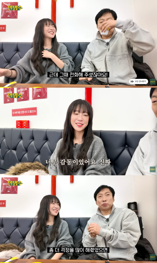쯔양은 “근데 그때 전화해주셨잖아요. 그때 너무 감동이었어요. 너무 감사해가지고”라고 표현했고, 박명수는 “아니야. 조금 더 걱정을 많이 해줬으면 더 좋은 선물이 왔을텐데.. 추석 때 30년산 양주가 올 줄 알았는데 국산 소주가 왔더라”라고 농담을 던져 웃음을 자아냈다. /cykim@osen.co.kr