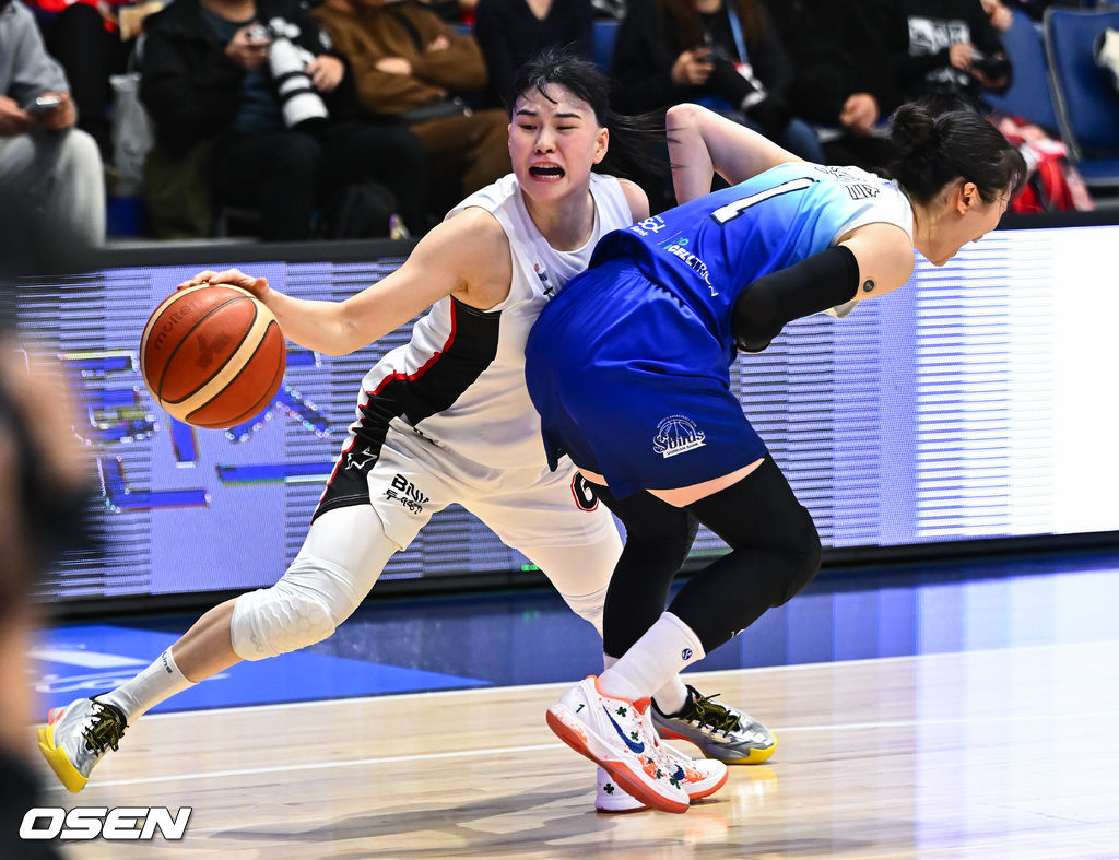 2쿼터 BNK 이소희와 신한은행 신이슬이 충돌하고 있다. 2026.01.10 / soul1014@osen.co.kr