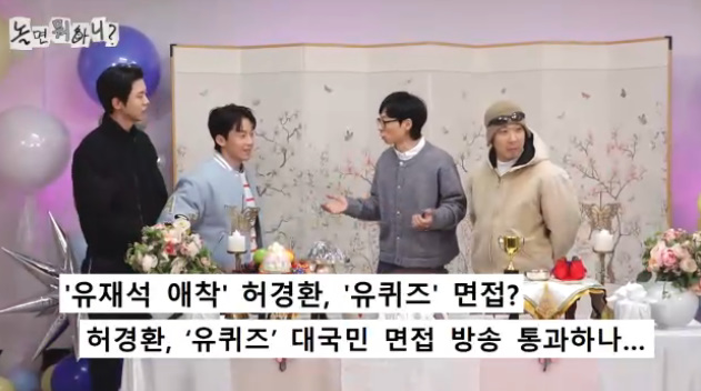 이에 허경환은 "아니다"라고 부인했고, 하하와 주우재는 "아니야?"라고 되물었다. 허경환은 "유퀴즈는 지금 심사위원 분들이 대국민 면접 영상이 돌기 시작했다"라고 털어놨다. 유재은 "본인은 모르는 면접 영상이라고 하더라"라고 허경환의 '유퀴즈' 합류에 대한 대중의 높은 관심을 언급했고, 허경환은 "근데 생각보다 방송이 끝나고 급격히 기사가 줄긴 했다"라고 솔직하게 밝혔다.
