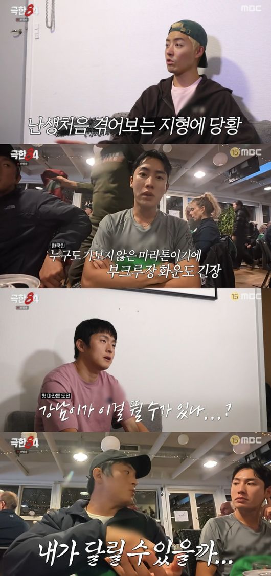 모든 설명이 끝나고, 마라톤 첫 출전인 강남은 “이건 뛸 수 없다. 나는 빙하 못 올라갈 것 같다”라며 “그 파티 때매 더 불안함이 생겼다. 얼음 위에 뛰는데 바닥이 다르지 않냐. 이런데서 못 뛰었고 코스도 모르고 7시간 안에 들어와야 하는데 못 들어올까 봐”라고 걱정했다.