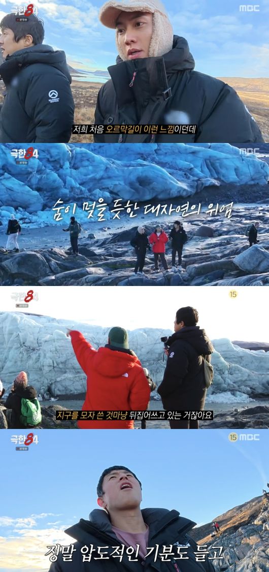 특히 “빙하 없을 것 같은데”라며 의심했던 기안84는 “와 진짜 어떻게 할 거냐”라며 감탄했다. 한눈에 담기지 않는 웅장함에 기안84는 계속해서 감탄사를 뱉더니 “얼마나 오래됐을까”라며 눈을 떼지 못했다. 강남 역시 “어마어마하네”라고 외쳤다.