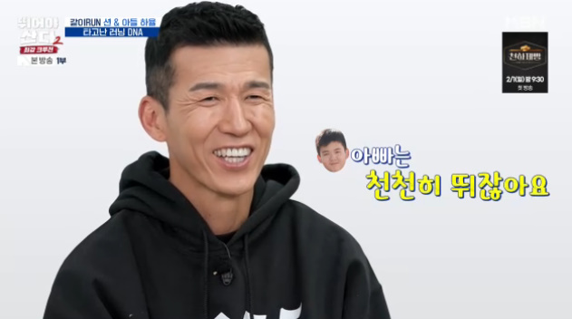 이후 션은 하율이에게 "지금 스피드 괜찮냐"며 "5분 15초인데 조금 더 올려볼까?"라고 제안했고, 두 사람은 기록에 집중하며 점차 스피드를 올리는 모습을 보였다.