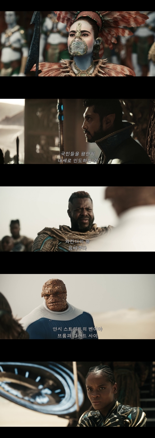 ‘음바쿠’가 ‘판타스틱 4’의 멤버인 ‘벤 그림(씽)’을 맞이하는 장면은 전혀 다른 세계에 존재하던 히어로들이 마침내 한자리에 모이게 될 것임을 암시해 강렬한 전율을 선사한다. 자신을 “와칸다의 왕”이라고 소개하는 ‘음바쿠’를 향해 “얀시 스트리트의 벤”이라며 화답하는 ‘벤 그림’의 모습은 앞으로 전개될 이들의 서사에 대한 기대를 높이는 동시에, 어떤 순간에도 유머를 잃지 않는 MCU 특유의 매력을 보여주며 팬들에게 웃음을 안긴다.