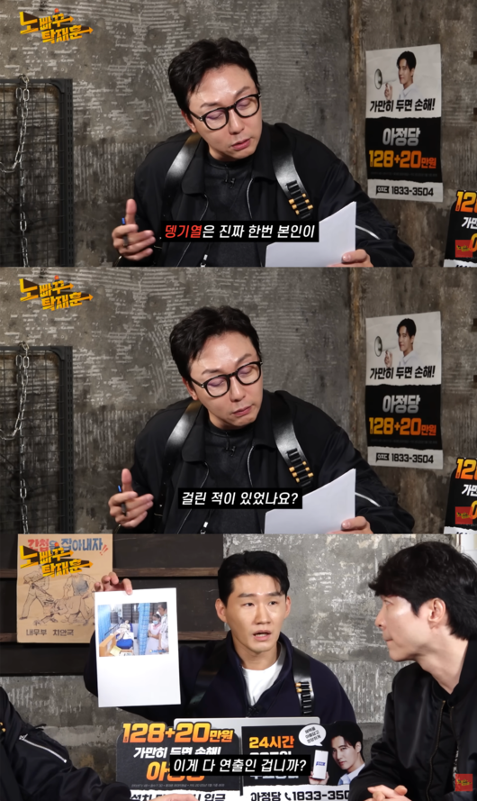 이에 신규진이 뎅기열 고백 당시 사진을 공개하며 “그럼 이게 다 연출인 겁니까”라고 물 었고, 신정환은 “아니 연출 아니고, 이제 진짜 의사 간호사 분이고, 병원이다. 필리핀 병원”이라고 말하며 종이를 빼앗았다.