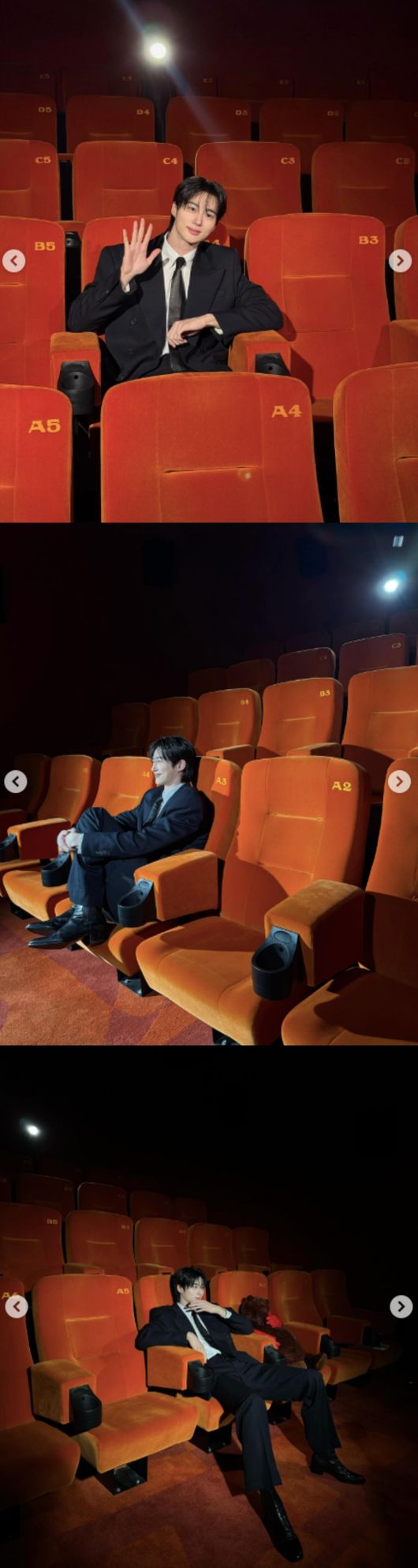 사진 속 변우석은 블랙 슈트를 입고서 인형을 꼭 끌어안고 영화관 의자에 앉아 포즈를 취하고 있다. 이어 쭈구려 앉은 자세를 취해 웃거나 팔짱을 끼는 등 다채로운 매력을 뽐냈다.