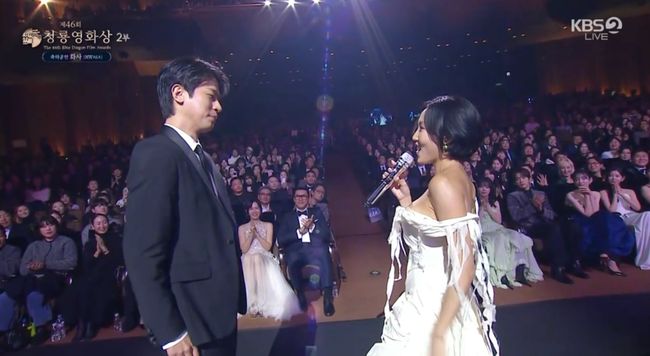 화사는 청룡영화상에서 김정민과 무대 후 “그때 한창 SNS을 끊었다. 그날 뒤로부터 좀 산속에 있었다. 그런데 친구들이 패러디 영상을 많이 보내줘서 봤다. 그래서 그 패러디 보면서 재밌었던 기억이 떠오른다”고 했다.