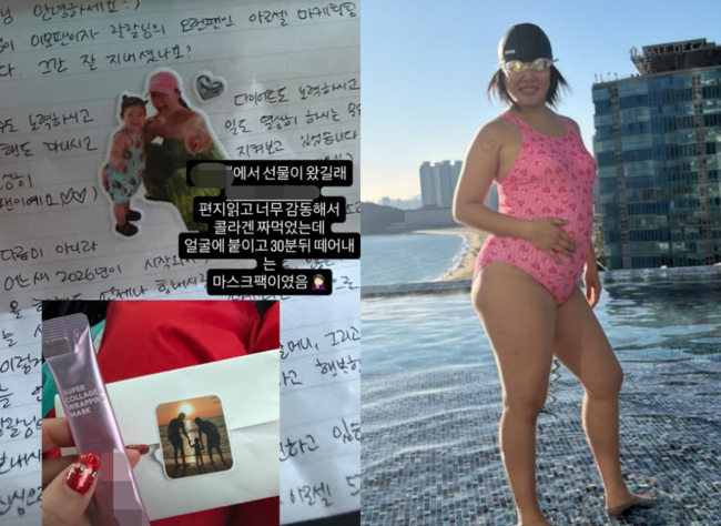 함께 올라온 사진에는 한 뷰티 브랜드 마케팅 팀으로부터 받은 편지와 제품이 담겼다. 포 형태로 개별포장된 제품 위에는 "콜라겐 래핑 마스크"라고 적혀 있다. 하지만 랄랄은 제품명을 제대로 읽지 않은 채 포장 형태만 보고 이너뷰티 제품으로 착각한 것.
