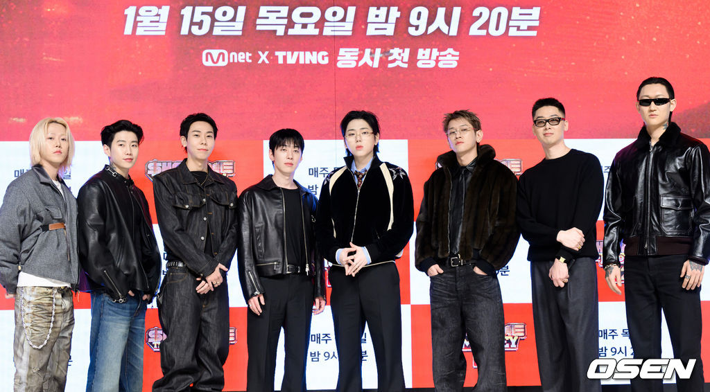 릴 모쉬핏, 박재범, 로꼬, 그레이, 지코, 크러쉬, 허키 시바세키, 제이통이 포토타임을 하고 있다. 2026.01.15 / jpnews@osen.co.kr
