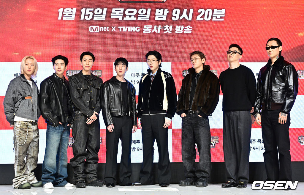 릴 모쉬핏, 박재범, 로꼬, 그레이, 지코, 크러쉬, 허키 시바세키, 제이통이 포토타임을 하고 있다. 2026.01.15 / jpnews@osen.co.kr