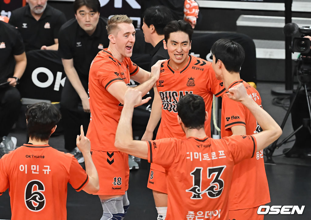 17일 부산 강서실내체육관에서 진에어 2025-2026 V리그 남자부 OK저축은행과 삼성화재의 경기가 열렸다.