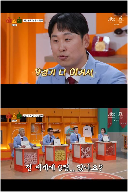 곽윤기는 “윤석민도 금메달 있냐”라며 출연하면서부터 윤석민을 공격했다. 윤석민은 “베이징 올림픽에서 금메달 땄다. 심지어 대한민국 구기 종목 최초로 금메달 딴 거다”라며 기가 막혀했다. 이형택은 “단체 종목은 이게 좋아. 내가 못해도 잘 따지 않냐”라며 추임새를 넣었다.