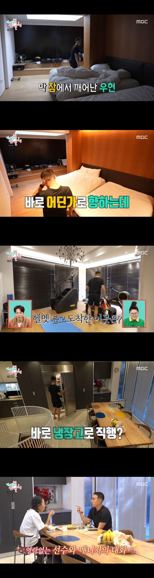 눈길을 끈 건 집 안에 마련된 개인 트레이닝 공간이었다. 신우현은 기상 직후 체중을 확인한 뒤, 헬멧을 착용하고 바로 훈련에 돌입했다. 러닝머신과 각종 장비가 갖춰진 트레이닝룸을 본 양세형은 “집 안에 지옥의 계단이 있다”며 감탄을 금치 못했다. 재벌家 주거 공간 안에 선수 전용 훈련장이 그대로 들어온 모습이었다.