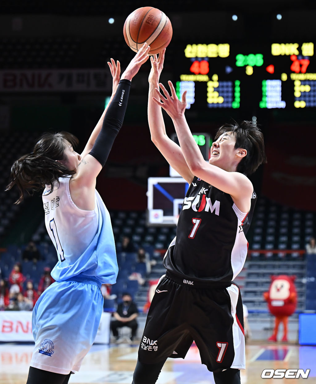 18일 부산 사직실내체육관에서 BNK금융 2025~2026 여자프로농구 부산 BNK와 인천 신한은행의 경기가 열렸다.