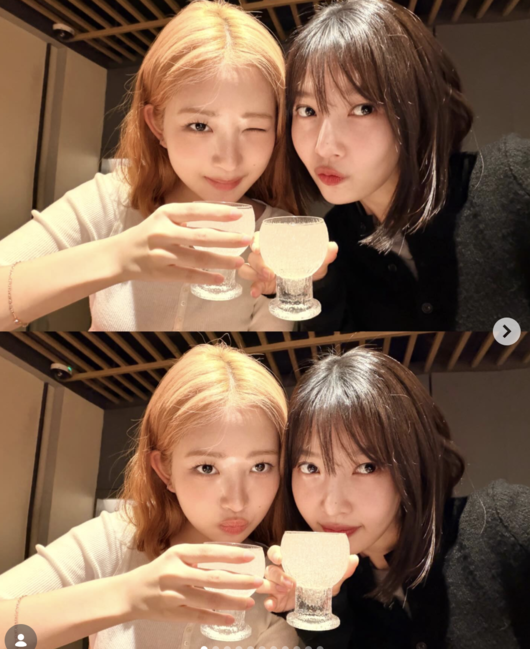 공개된 사진 속 조이는 레이와 나란히 앉아 식사를 즐기며 편안한 시간을 보내고 있다. 테이블 위에는 먹음직스러운 음식이 놓여 있고, 두 사람은 장난기 가득한 표정과 포즈로 카메라를 응시하며 자연스러운 분위기를 연출했다. 술잔을 기울이며 웃고 있는 모습에서는 각별한 친분이 고스란히 전해졌다.